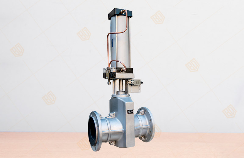 百鋼閥門集團生產銷售的GJ641X-6L氣動管夾閥有由上下鋁合金閥體,橡膠管套、大小閥桿閘板、上下導柱等零件組成。當順轉手輪時,使大小閥桿同時帶動上下茬板、壓縮管套、進行關閉,反之即行開啟。這樣,閘板在導柱之間上下往復完成閥門開閉工作,另因橡膠管套或承力小,所以在開閉時,操作人員旋轉輪時只要感到適量抵觸,均達到開閉極點。切勿盡力多人補助,禁用其他工具開閉。