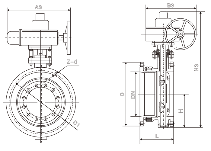 D643H氣動硬密封法蘭蝶閥主要外形尺寸-PN16(16bar) |