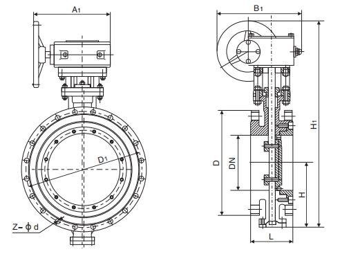 1、本閥采用三偏心密封結構,閥座與蝶板幾乎無磨損,具有越觀越緊的密封功能。